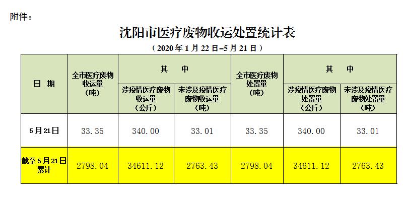 沈阳市医疗废物收运处置情况通报(115期)