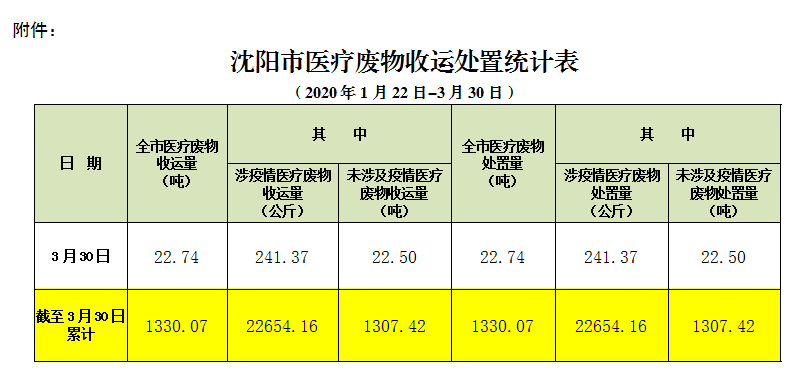 附件:沈阳市医疗废物收运处置统计表