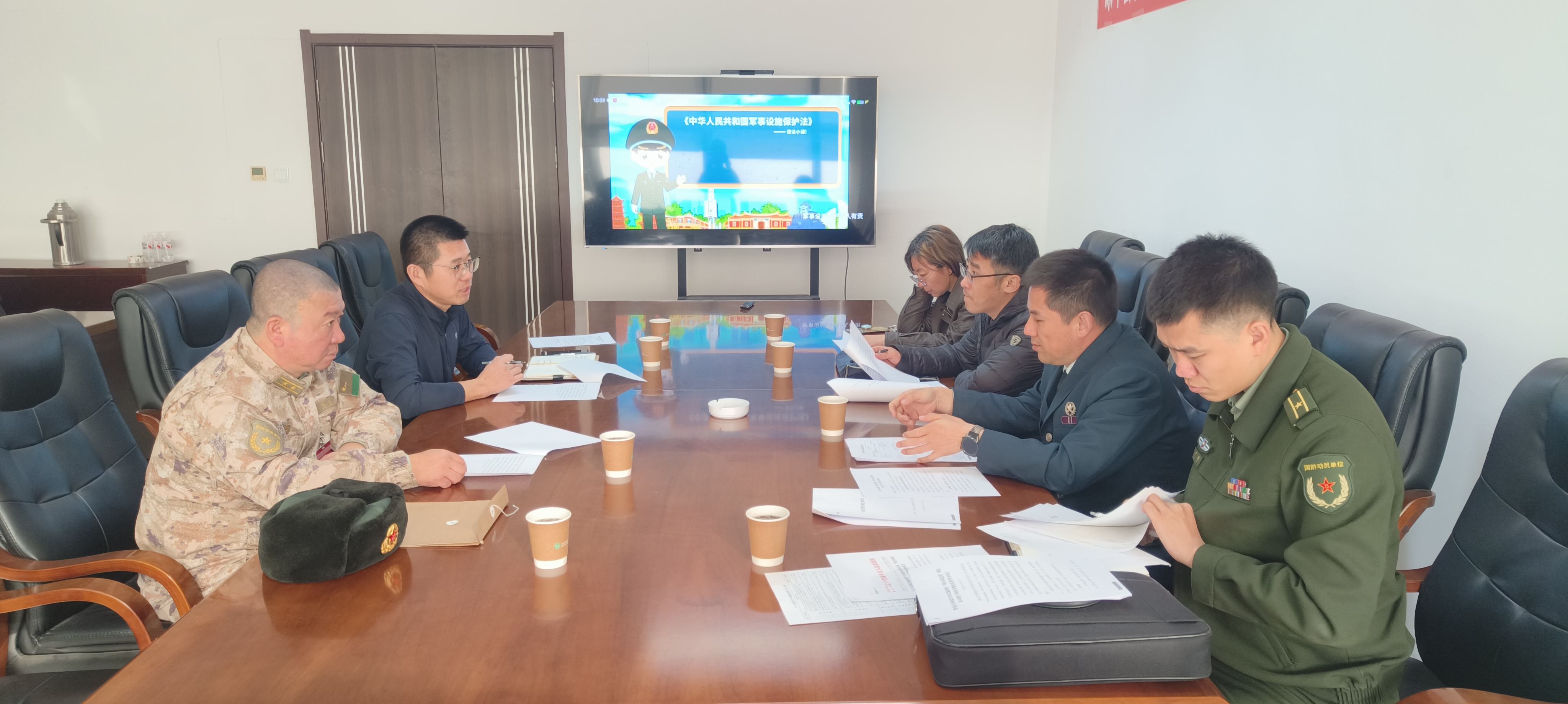 为深入贯彻《中华人民共和国军事设施保护法》,凝聚军地宣传合力,强化全民国防与军事设施保护意识,近日,沈阳警备区、沈阳市国动办联合康平县国动委联合办召开《中华人民共和国军事设施保护法》联合宣传座谈会。警备区动员处相关领导、市国动办政策法规处及康平县国动委联合办相关负责人等参会,现场播放宣传视频,夯实宣传基础、凝聚军地共识。