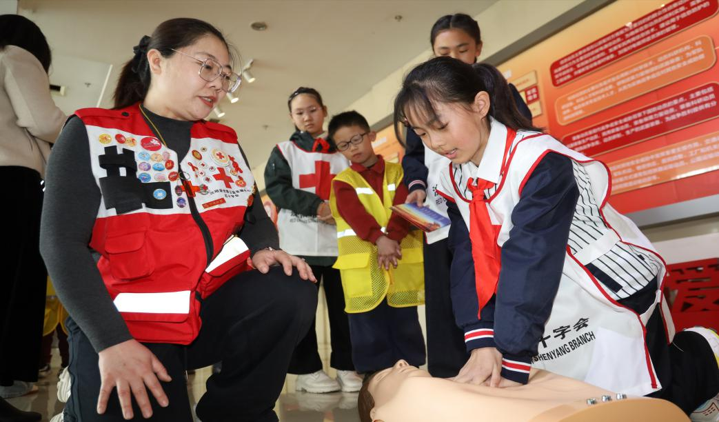 50名来自各所学校的青少年小志愿者走进沈阳市人民防空教育馆,通过实物观摩、影像解读、互动体验等多种形式,沉浸式学习防空防灾知识。红十字专业人员手把手教学心肺复苏与AED实操。全体小志愿者化身小小安全宣传员,分组录制安全宣传视频,以青春行动践行安全理念,传递向上向善的正能量,让安全技能宣传真正提质扩面!