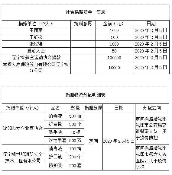 沈阳市红十字会接收、分配社会捐赠款物公告(六)